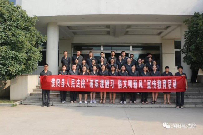 为进一步落实中央八项规定精神成果,倡导文明新风,按照濮阳县纪委、县文明办要求,8月29日上午,濮阳县人民法院开展“破陈规陋习 倡文明新风”主题宣传教育活动,全体干警参加了活动。