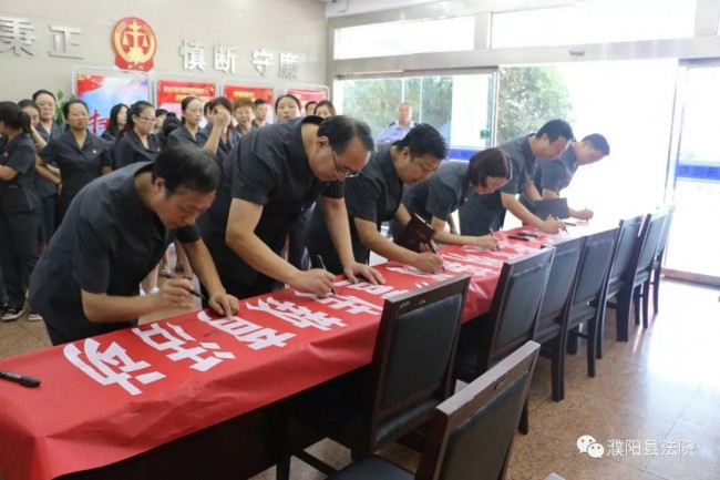 活动结束后,干警们在“破陈规陋习 倡文明新风”的宣传横幅上签字,并表示要从现在做起,从自身做起,破陈规、除陋习,传文明、树新风,以实际行动破旧立新,移风易俗,营造风清气正的良好院风,为建设美丽文明新濮阳贡献力量。