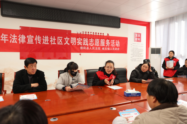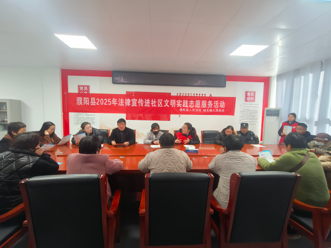 为深入贯彻落实全县精神文明建设工作会议精神,扎实推进全县城市文明建设常态化、长效化,11月26日,濮阳县法院干警到龙城社区开展法律宣传进社区文明实践志愿服务活动。