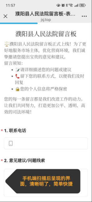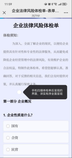 08不断优化“优化营商环境涉企留言板及企业法律风险体检单”后台,扫码更便捷。