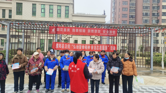 为深入学习贯彻党的二十届四中全会精神,大力弘扬雷锋精神,在第63个学雷锋纪念日来临之际,濮阳县法院组织干警走进天和社区,开展“弘扬雷锋精神 普法志愿服务”活动,将法律知识送到群众身边,把法治精神融入百姓生活。