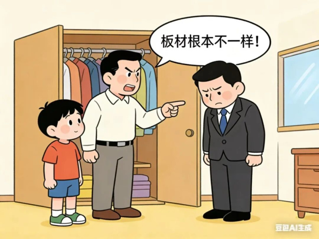 原告张某甲一处房产需装修,原告父亲张某乙与被告某建材公司签订了《全部木作高级定制订购合同》一份,约定原告向被告定制衣柜、鞋柜、橱柜等家具,合同载明柜体、柜门所用板材,原告父亲按照约定向被告公司法人蒋某支付货款98万元。制作完成后被告安排人员进场安装。原告验收时发现所用板材并非双方约定材质,为维护合法权益,原告诉至法院。